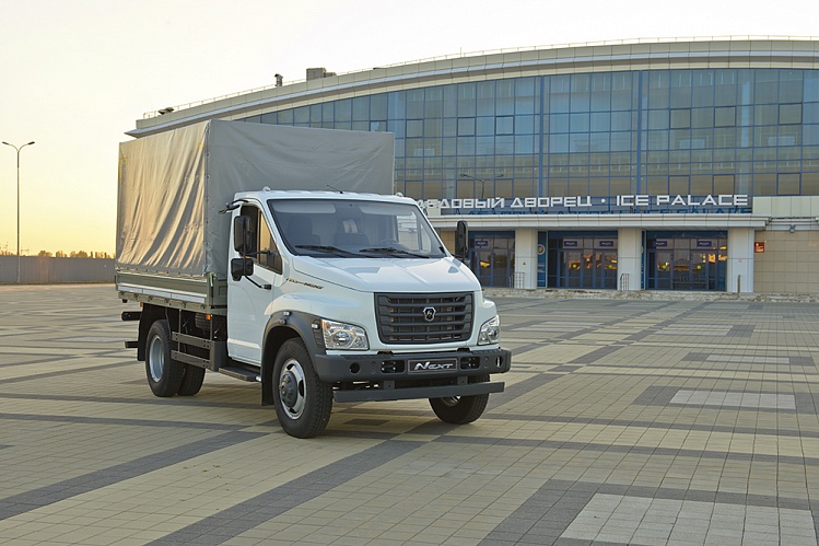Среднетоннажный грузовик Газон NEXT с двухрядной кабиной. |