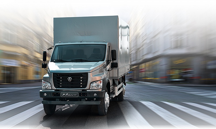 Среднетоннажный грузовик Газон NEXT с двухрядной кабиной. |