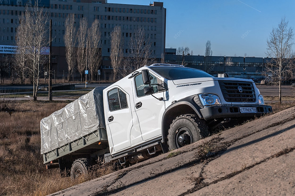 Среднетоннажный грузовик Садко NEXT с двухрядной кабиной повышенной проходимости. |